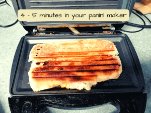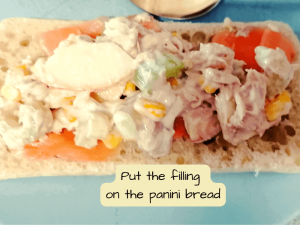 4.Cut a panini bread into half & put ★3 on the half of panini bread then cover it with the other half