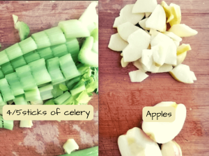 2.Wash & cut 4/5 sticks of celery & apples like the picture.