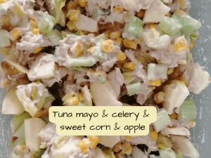 3. ★Put all (Tuna/sweetcorn/apple/celery) into a bowl with mayonnaise, then mix well